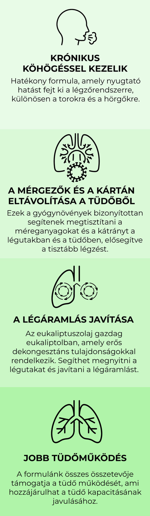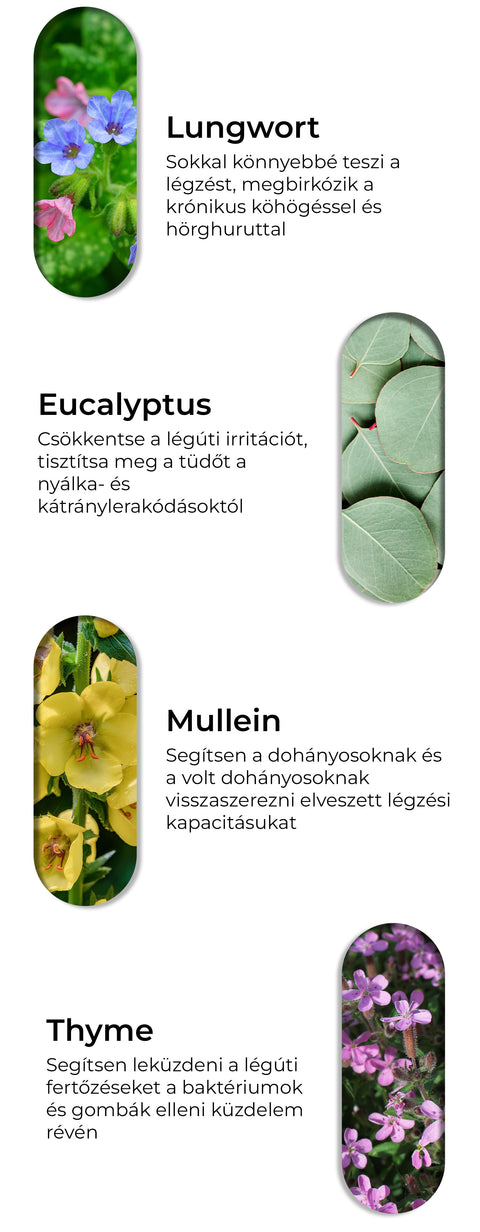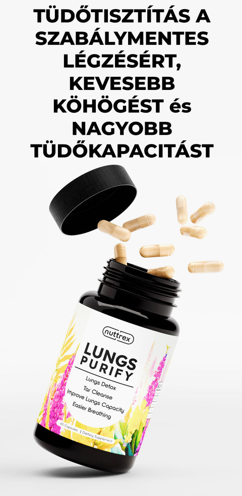 A Nuttrex® LUNGS PURIFY az elérhető legerősebb formula. Segít eltávolítani a méreganyagokat, a nyálkát, a kátrányt és a szennyező anyagokat a tüdőből. 48-72 órán belül kezdi érezni ennek a természetes formulának a hatását, és arra számíthat, hogy könnyebben lélegzik, megnövekszik a tüdőkapacitás, és drasztikusan csökkenti a köhögést, és mindez tudományosan alátámasztott!